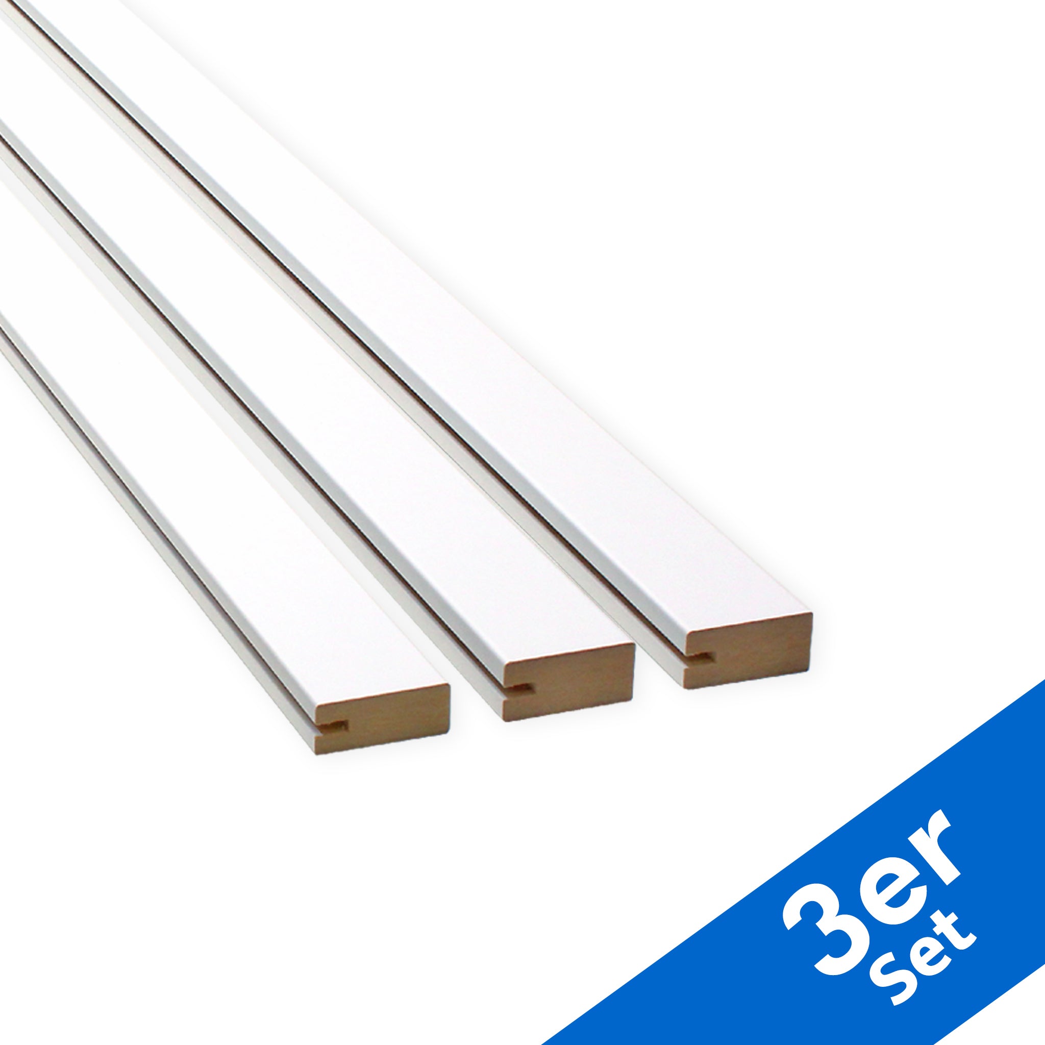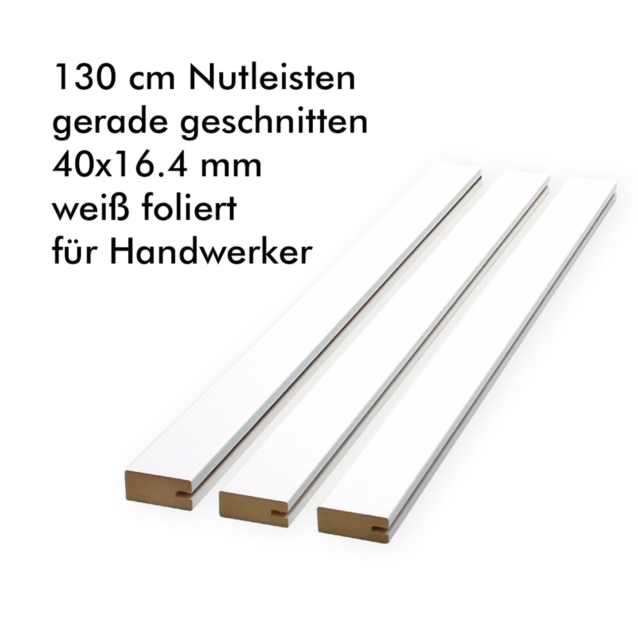3 Stück Nutleisten 130 cm, MDF weiß foliert, mit 4 mm Nut